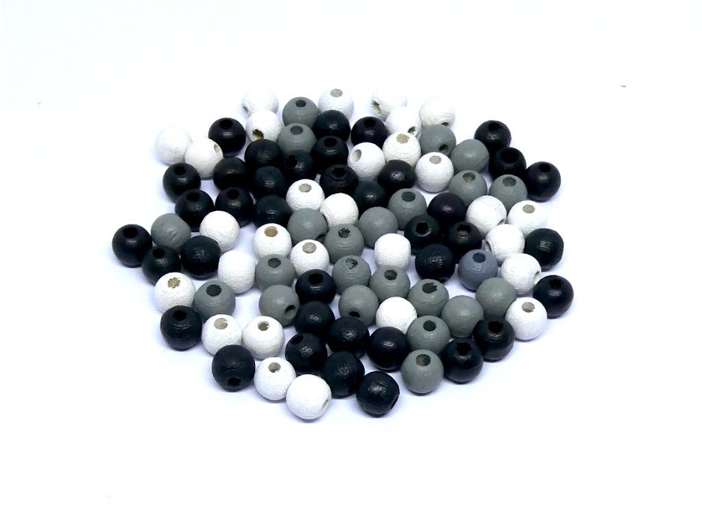 Dřevěná kulička, velikost 6 mm, černobílý mix.