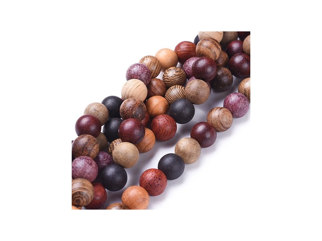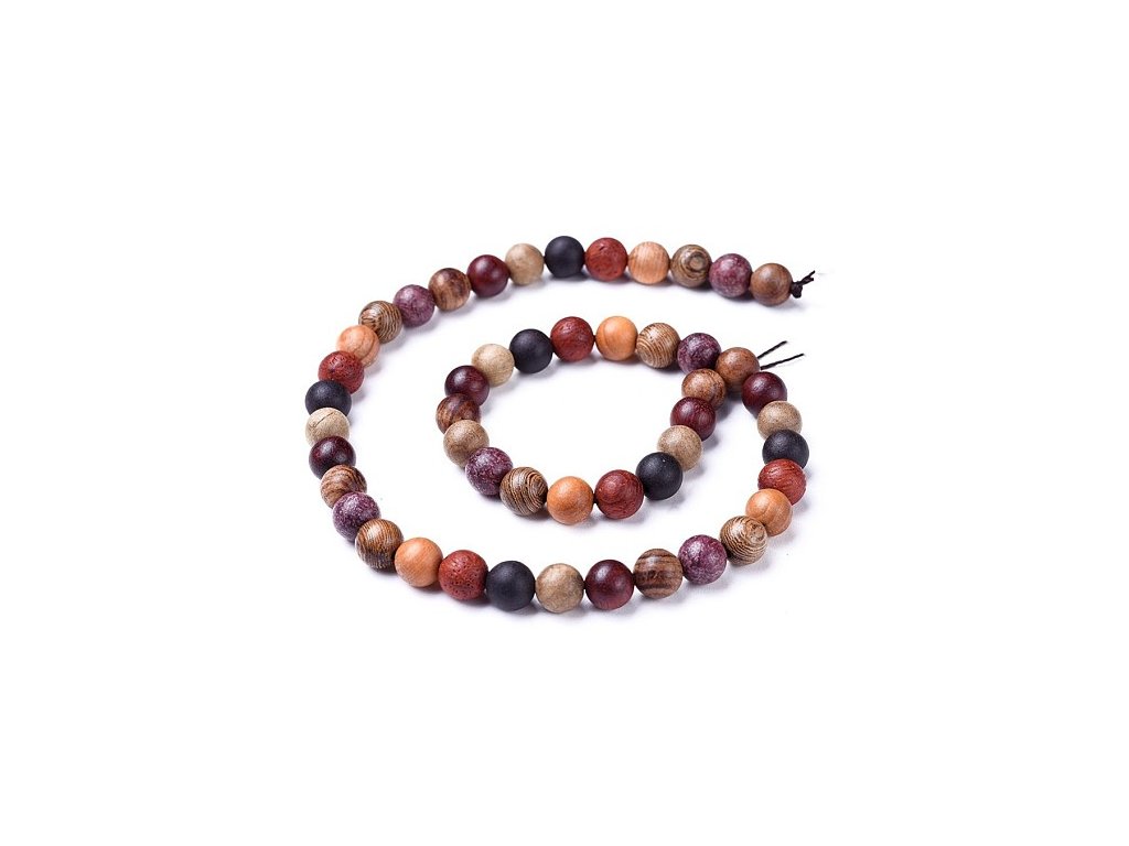 Dřevěné korálky z mixu druhů dřeva o velikosti 8 mm