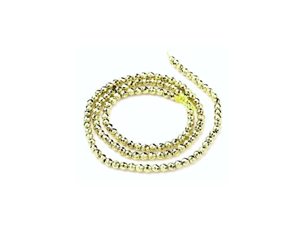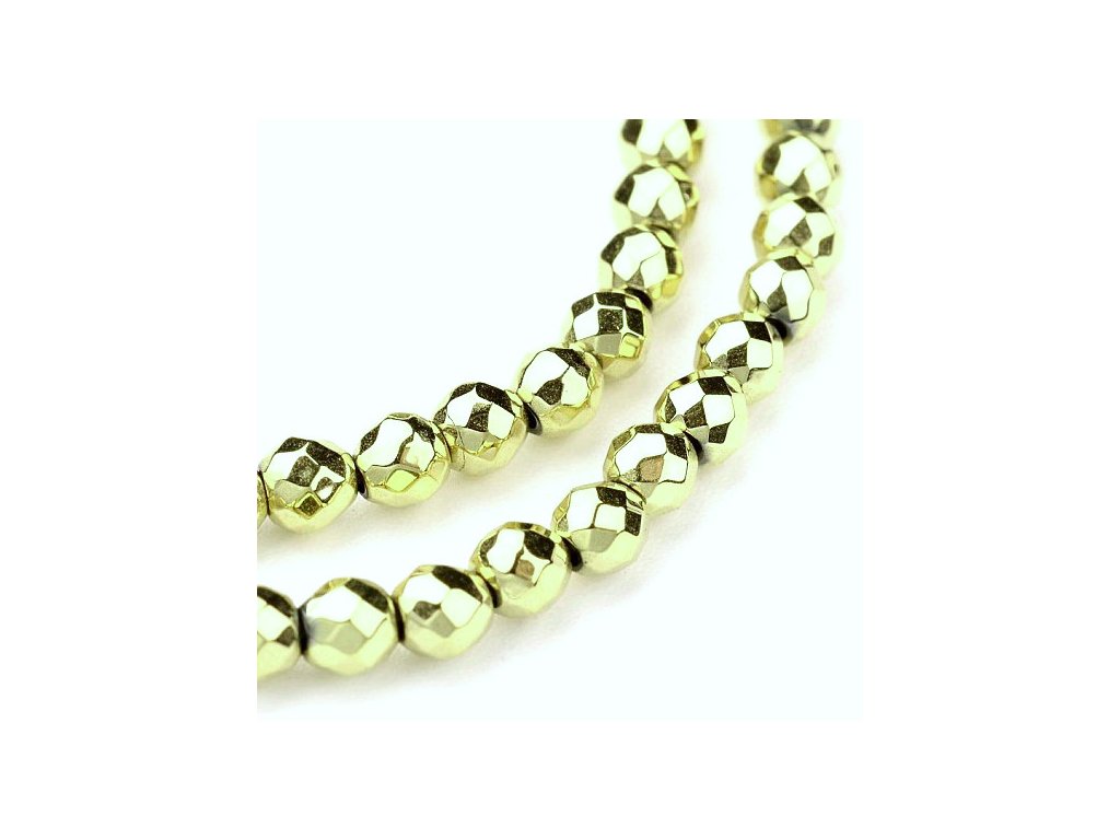 Faceted hematite beads, 3 mm, electroplated, 04 light gold