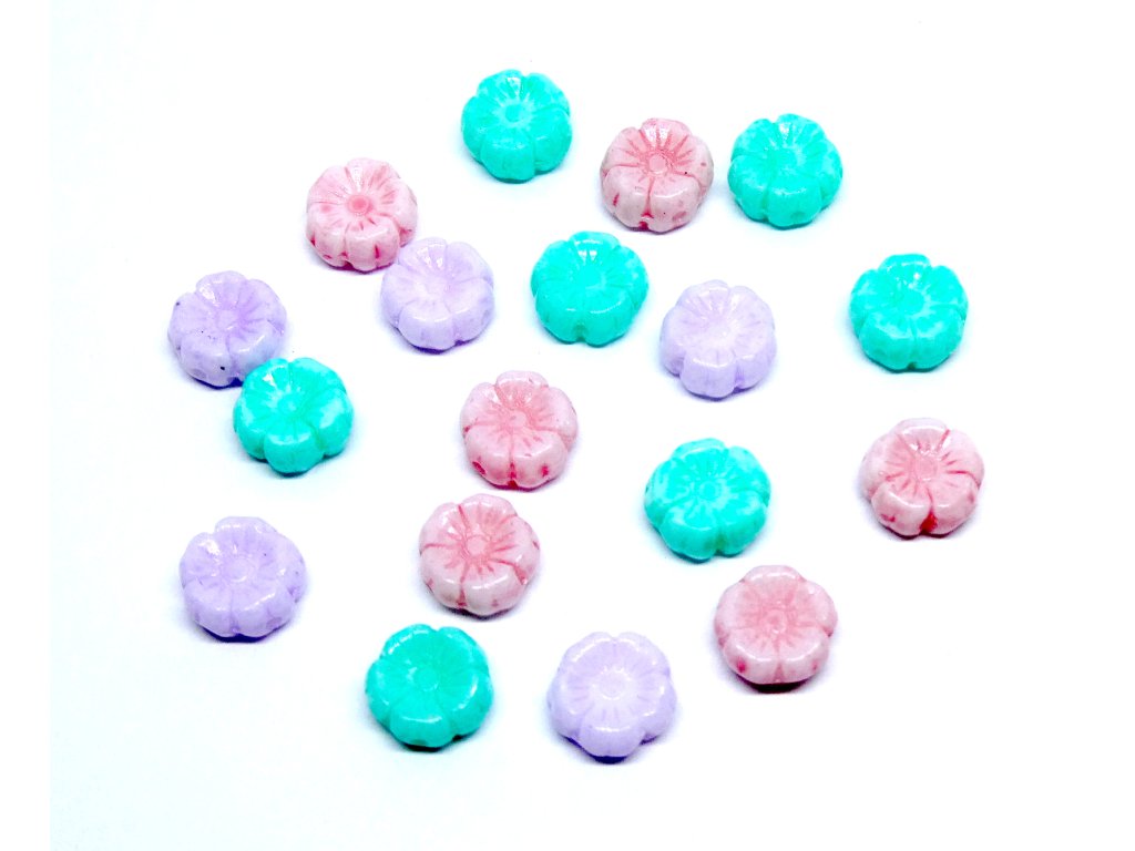 Pressed glass beads, flower shape, 8×4 mm, color 02010/343MIX