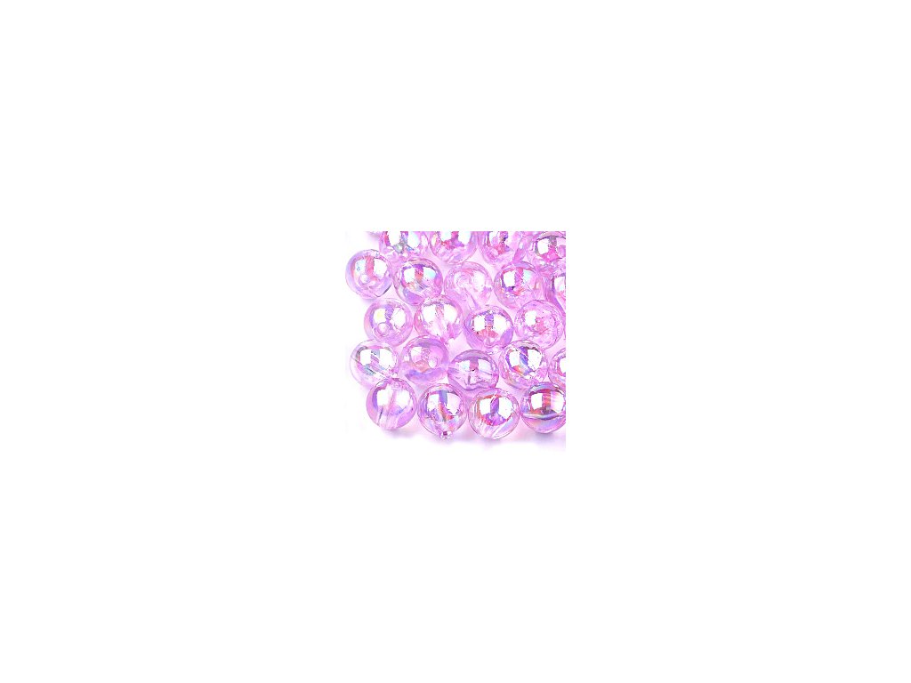 Plastic bead, 8 mm round shape, clear light purple with AB