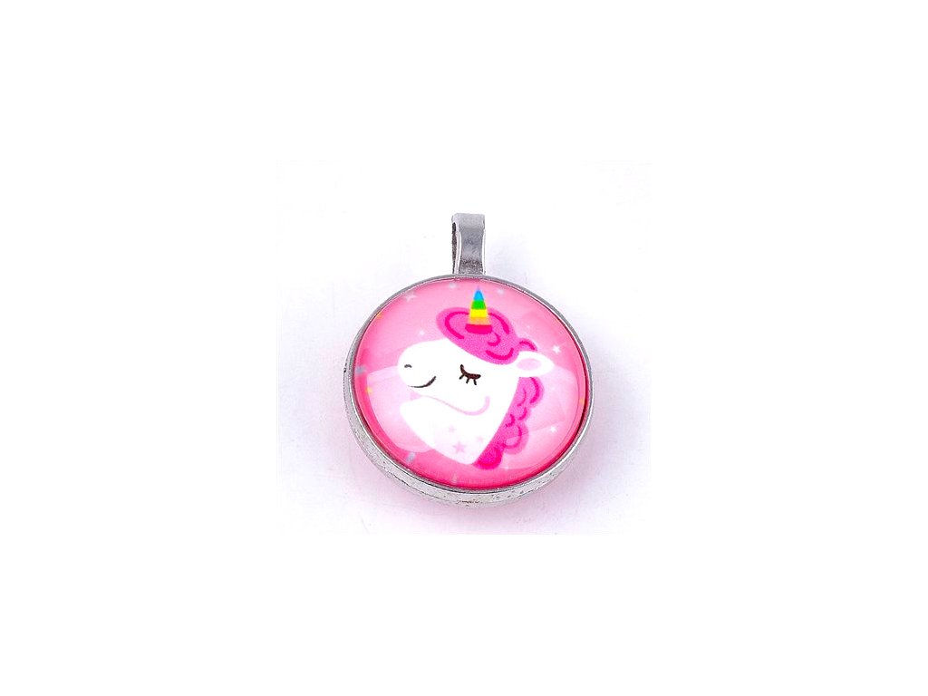 Pendant - cabochon with setting - unicorn, 35x27 mm, mix