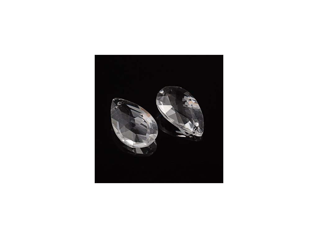 Glass pendant, pear 28x17x9 mm, crystal