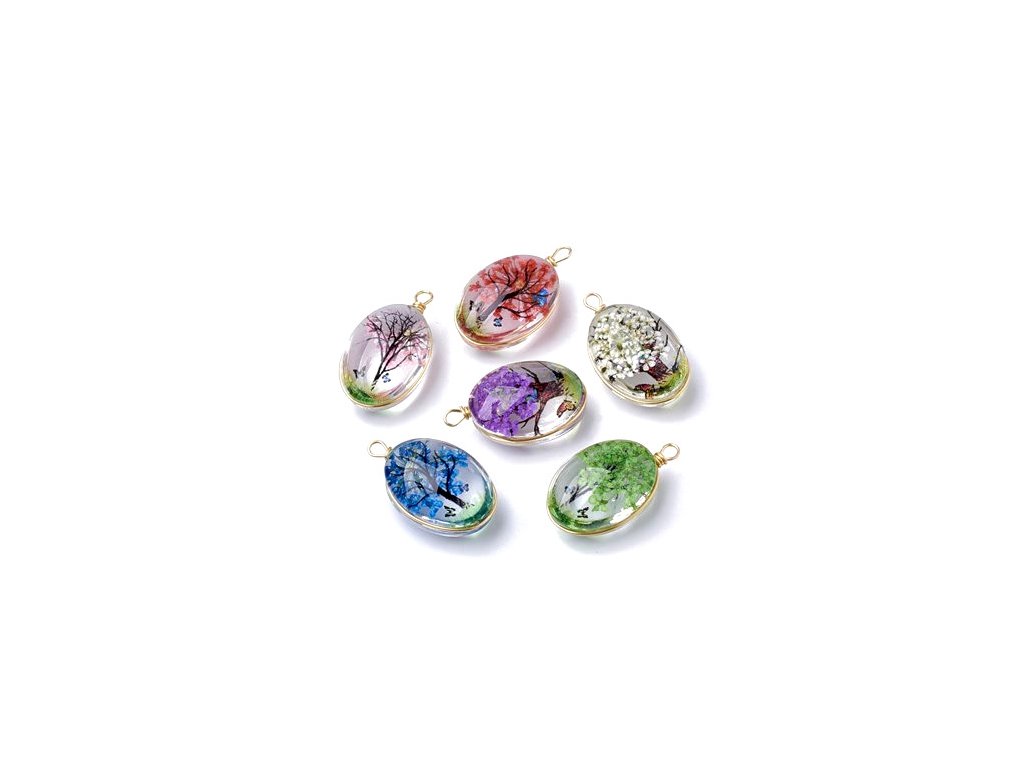 Glass pendant with flower 23x13x10 mm