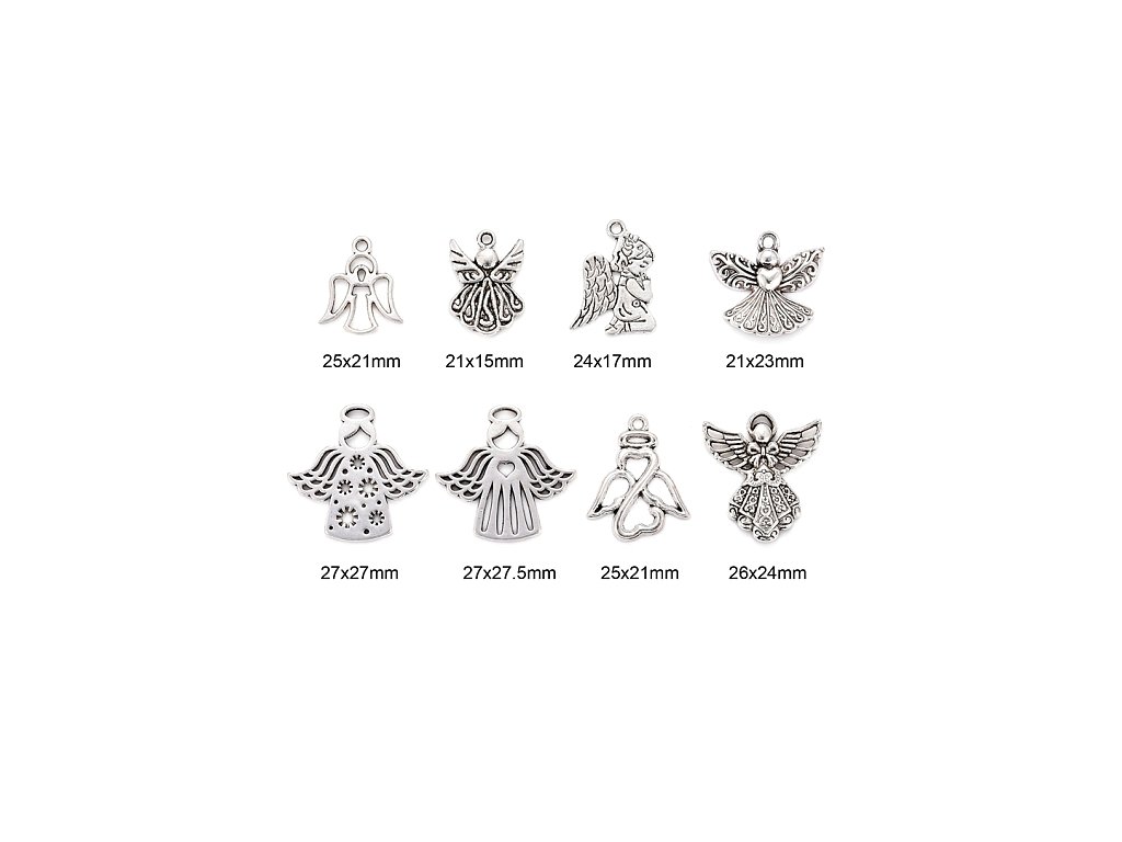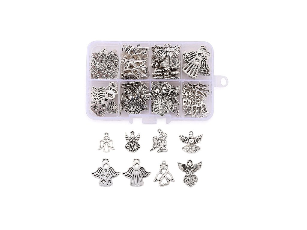Kovové přívěšky - andílci, mix 21-28 mm, barva starostříbro