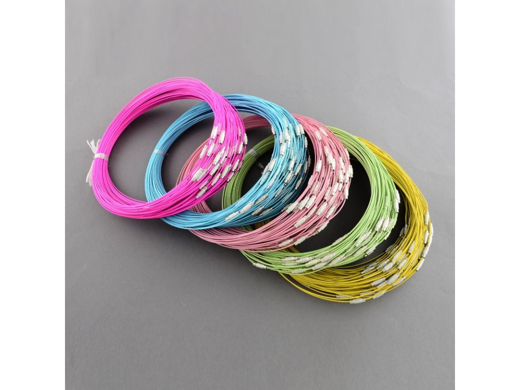 Drátěný náhrdelník z nerezové oceli, s mosazným šroubovacím zapínáním.