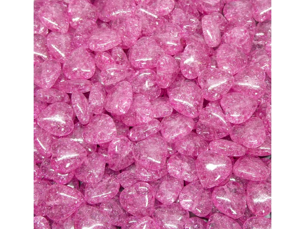 Mačkané a práskané korálky, srdíčka 12x12 mm, barva 00030/85500/fuchsie