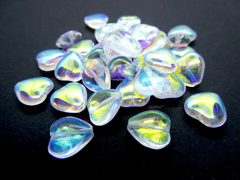 Mačkané skleněné korálky, tvar srdíčko 12 mm, barva 00030/28701.