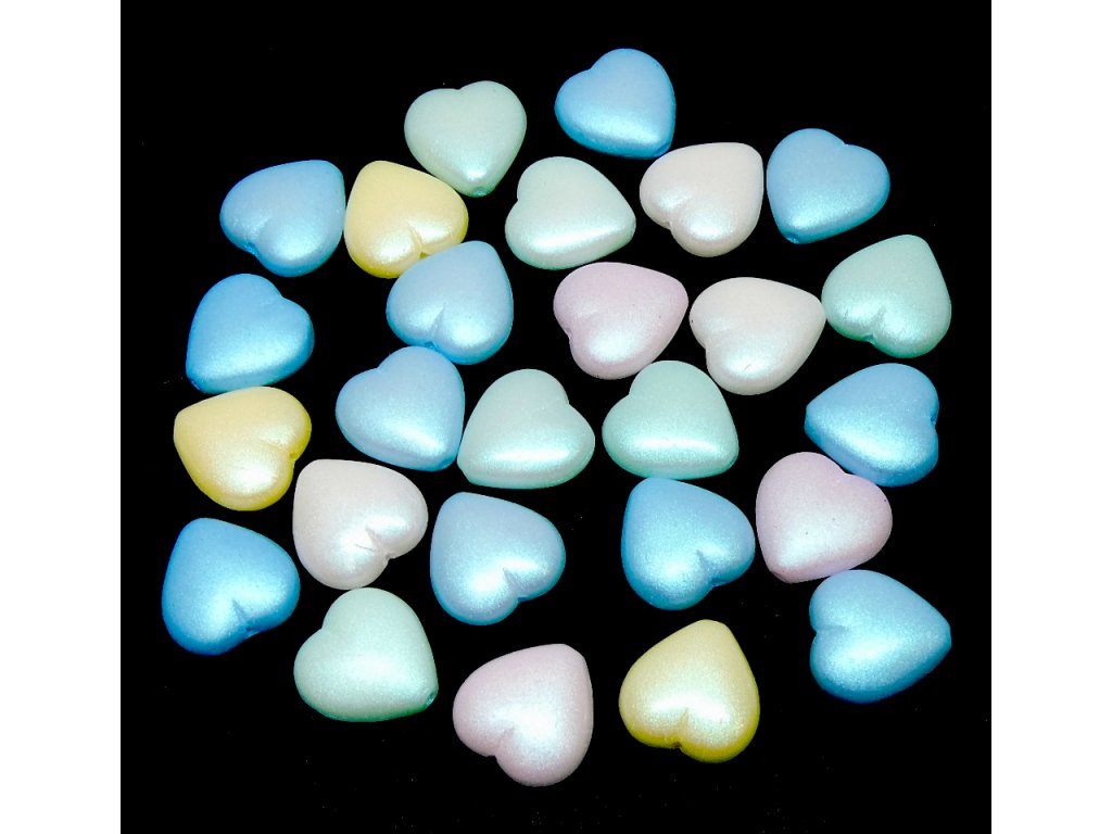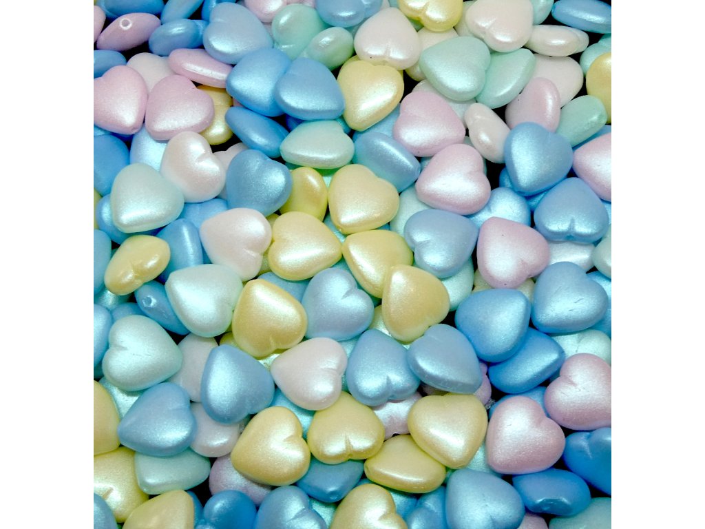 Mačkané korálky, srdíčka 12 mm, barva 02010/MIX Soft Pastels