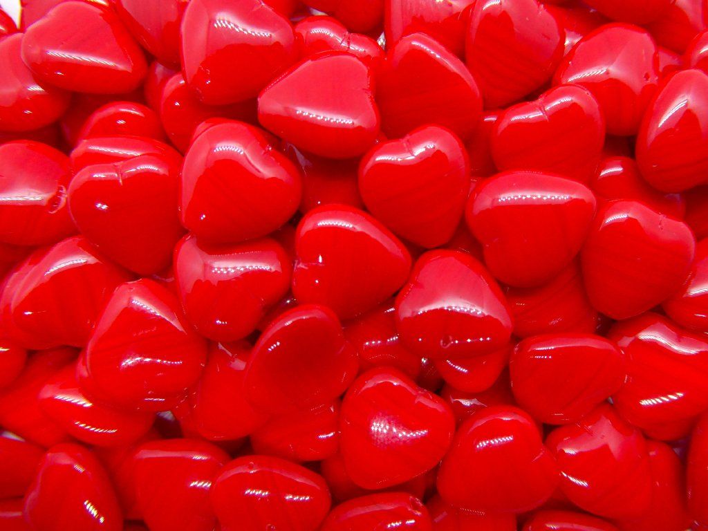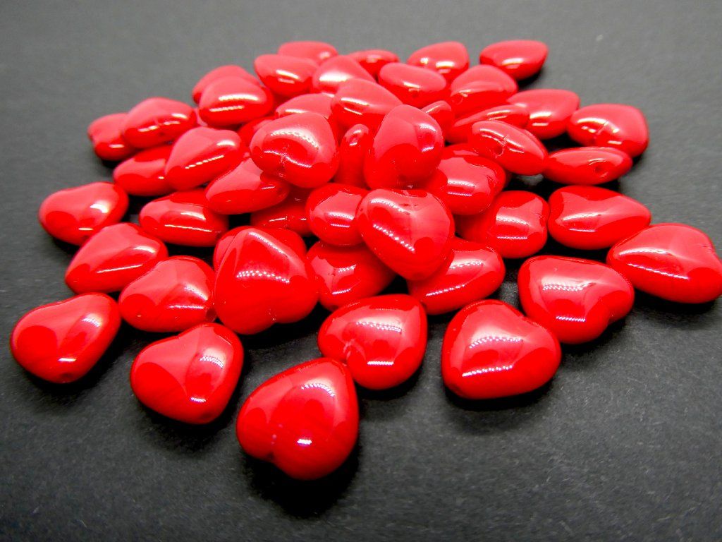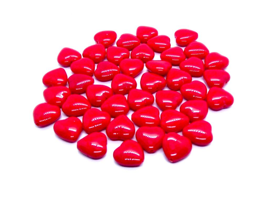 Mačkané skleněné korálky, tvar srdíčko 12 mm, barva 93200 - červená, sytá.