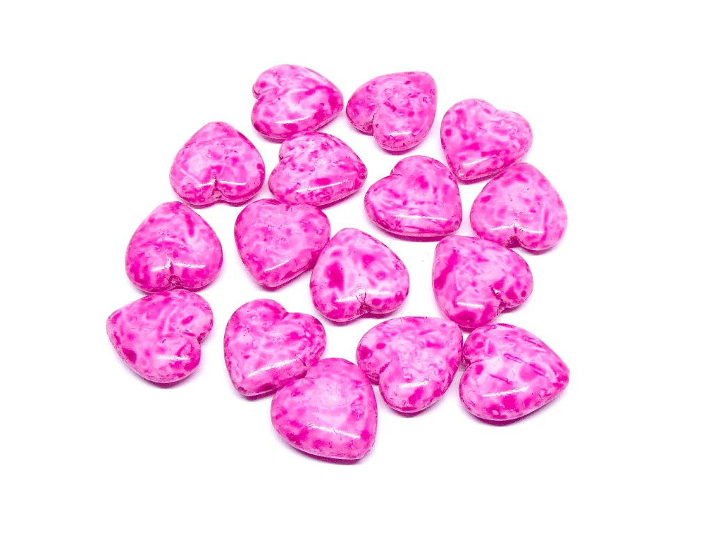 Mačkané korálky, srdíčka 15x16 mm, barva 02010/fuchsie