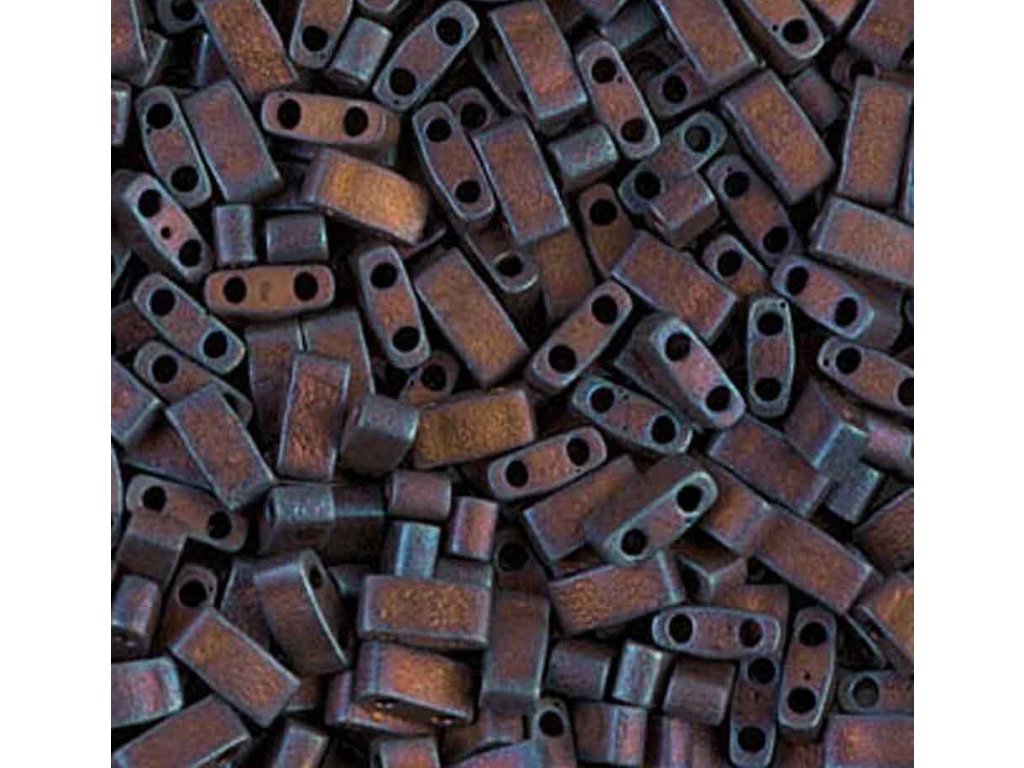 Poloviční tila korálky jsou obdélníkové korálky se 2 dírkami rovnoběžnými dírkami. Velikost je 2,5 x 5 mm, což je přesně polovina velikosti čtvercových korálků tila. S tloušťkou pouhých 2 mm jsou velmi ploché.