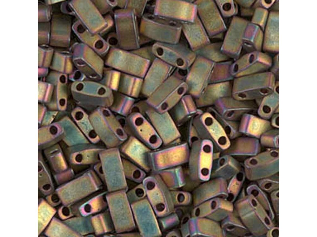 Poloviční tila korálky jsou obdélníkové korálky se 2 dírkami rovnoběžnými dírkami. Velikost je 2,5 x 5 mm, což je přesně polovina velikosti čtvercových korálků tila. S tloušťkou pouhých 2 mm jsou velmi ploché.