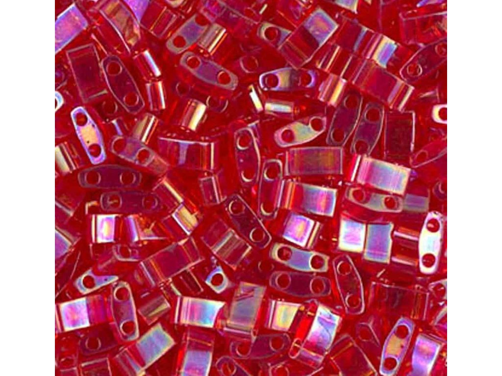 Poloviční tila korálky jsou obdélníkové korálky se 2 dírkami rovnoběžnými dírkami. Velikost je 2,5 x 5 mm, což je přesně polovina velikosti čtvercových korálků tila. S tloušťkou pouhých 2 mm jsou velmi ploché.