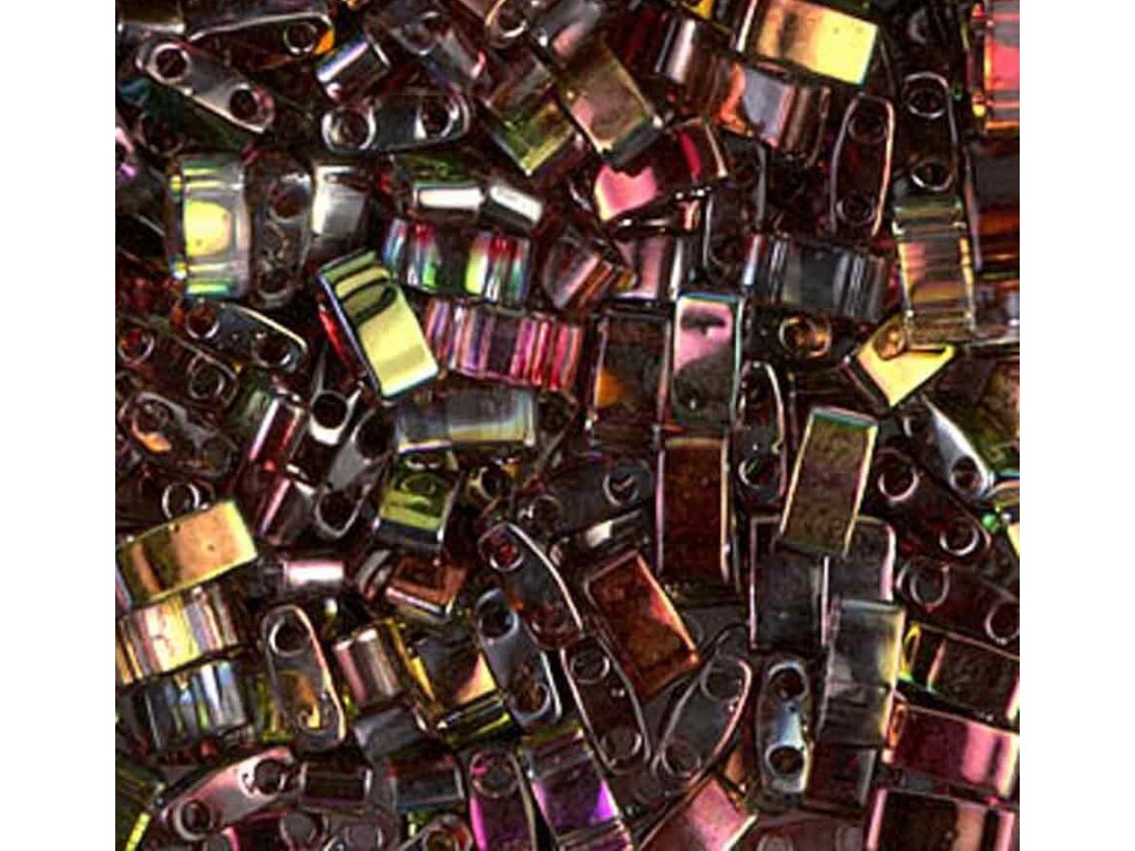 Poloviční tila korálky jsou obdélníkové korálky se 2 dírkami rovnoběžnými dírkami. Velikost je 2,5 x 5 mm, což je přesně polovina velikosti čtvercových korálků tila. S tloušťkou pouhých 2 mm jsou velmi ploché.