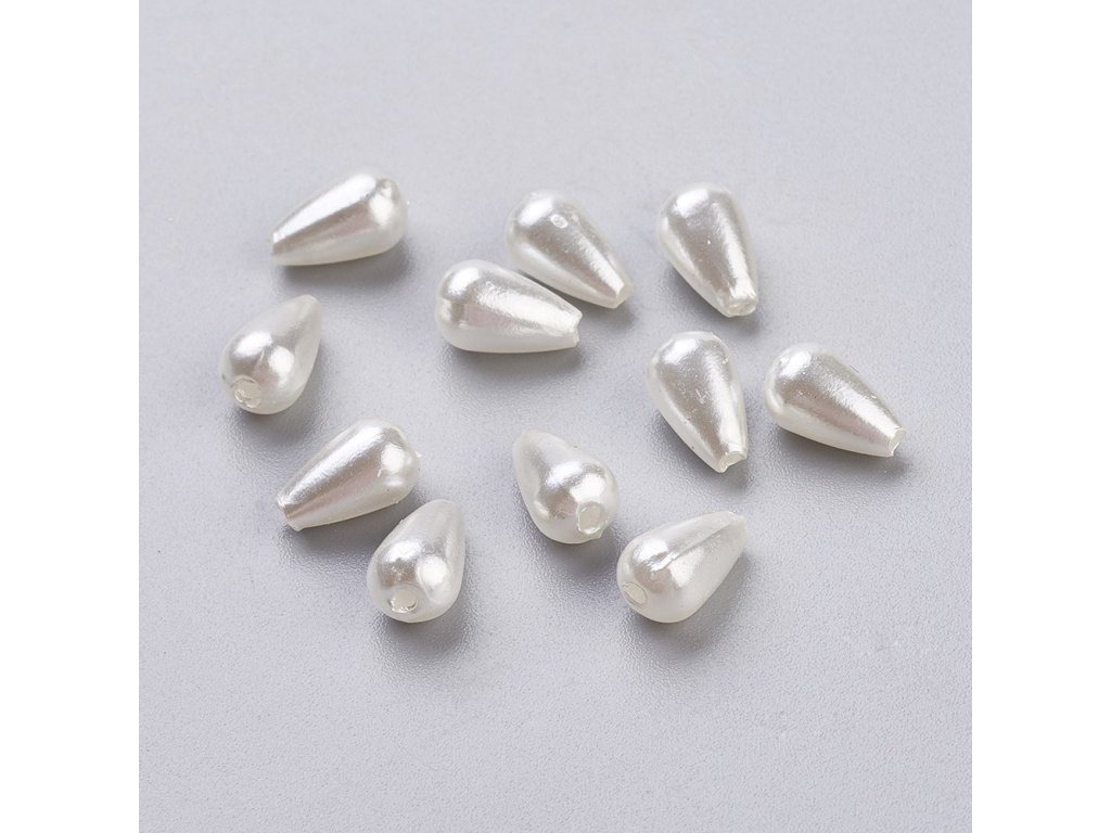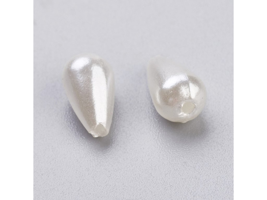 Plastový korálek, hruška 10x6 mm, barva bílá