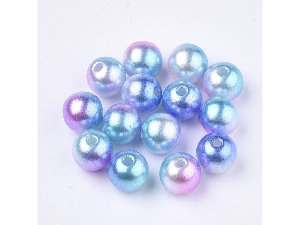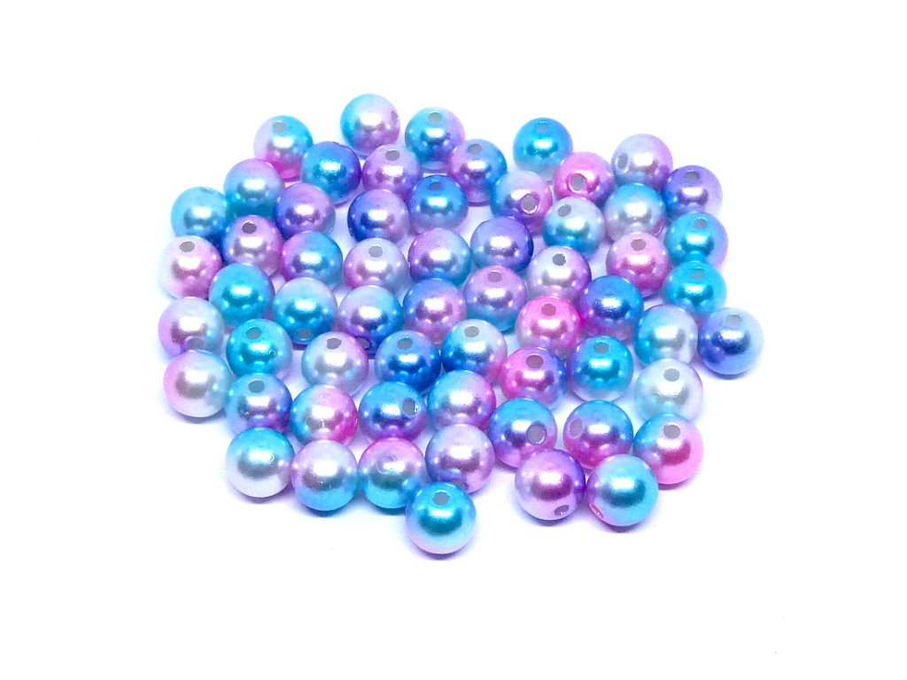 Plastový korálek, kulička 8 mm, modro růžová