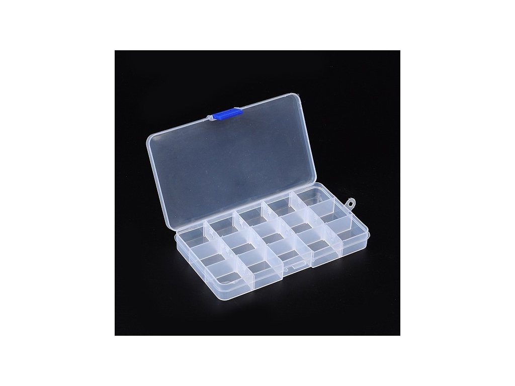 Plastový organizér - 15 přihrádek, rozměr 10,5x18x2,2 cm