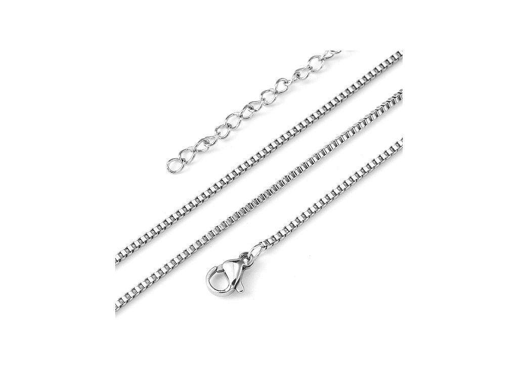 Benátský řetízek s karabinkou - nesvařovaný, o délce 45 cm, materiál ocel 304.