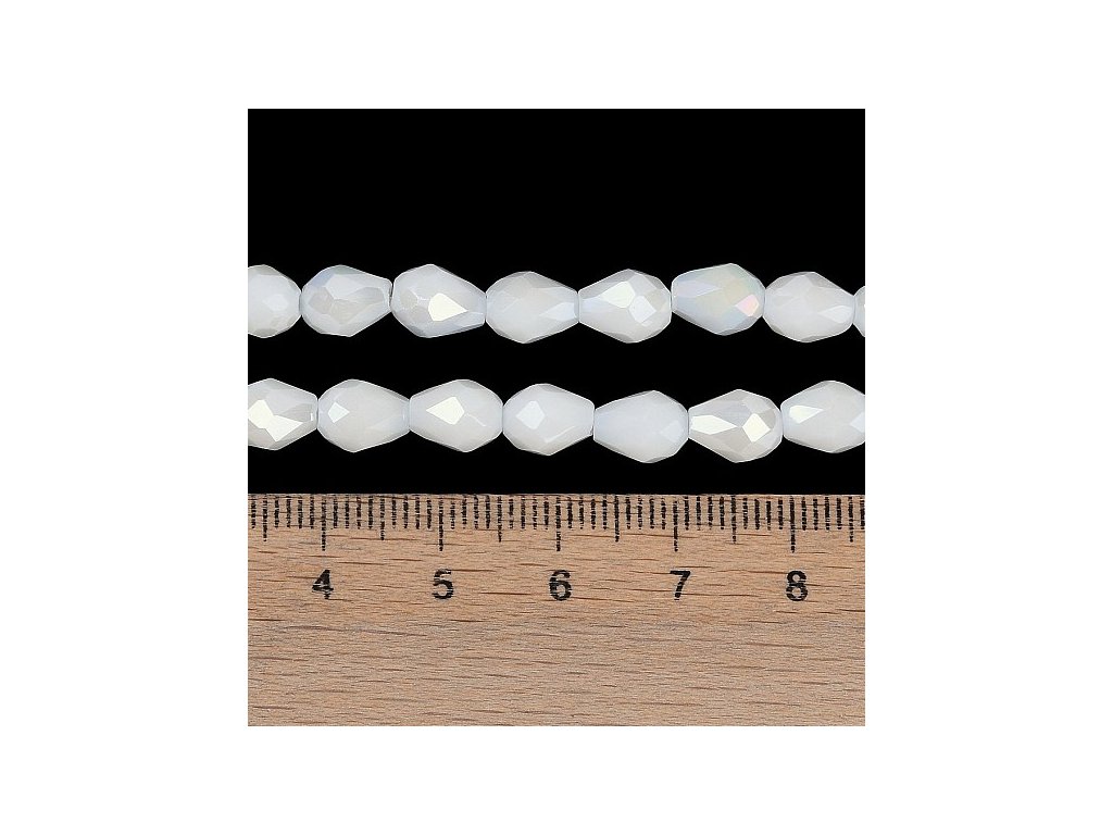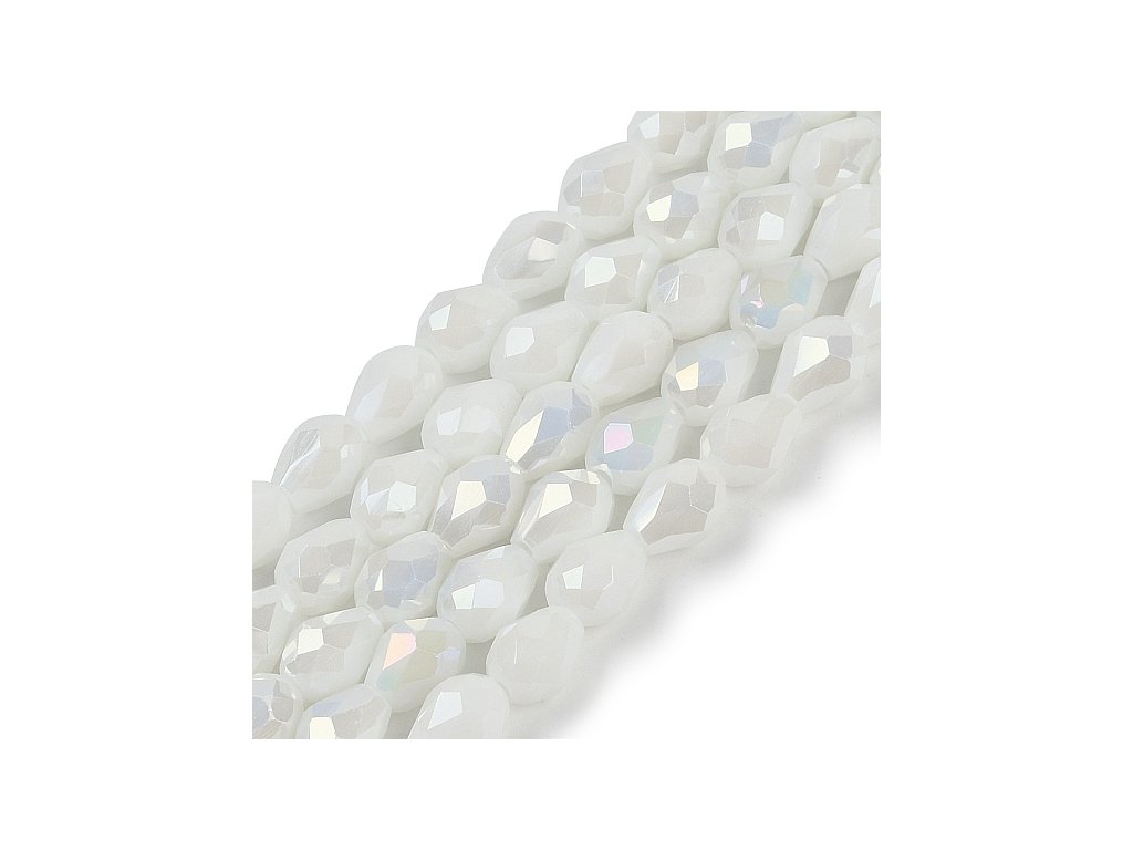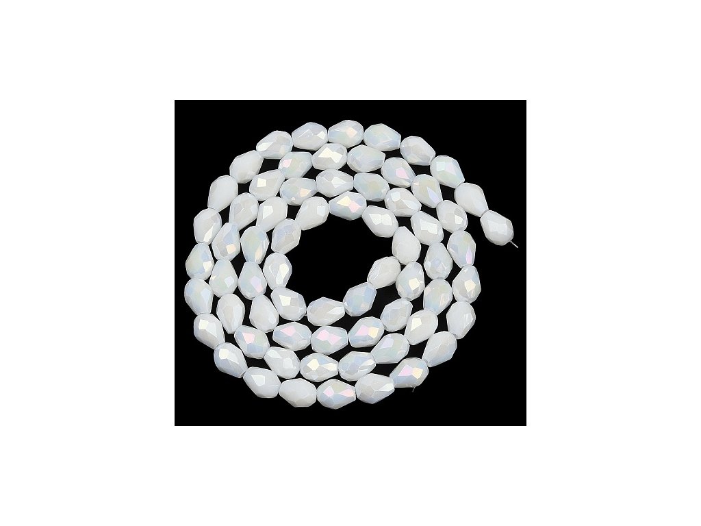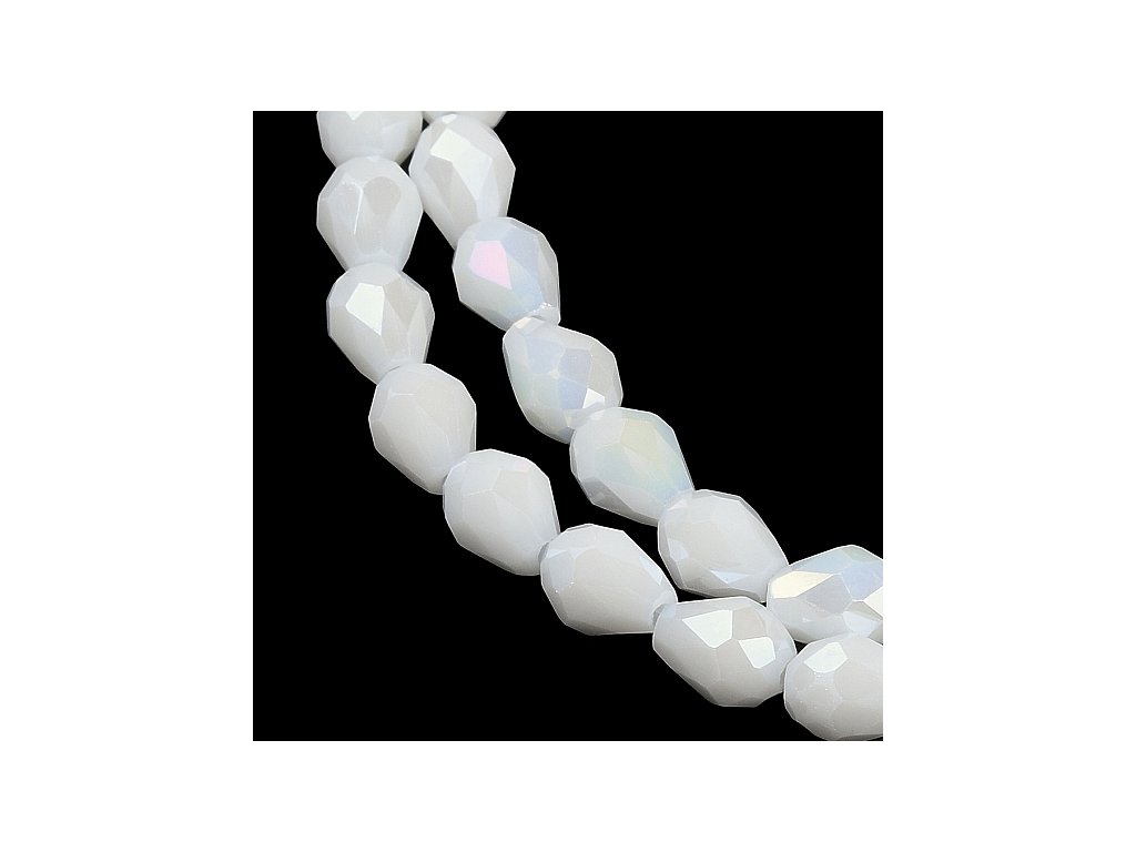 Broušené korálky, hruška 15x10 mm, barva bílá AB