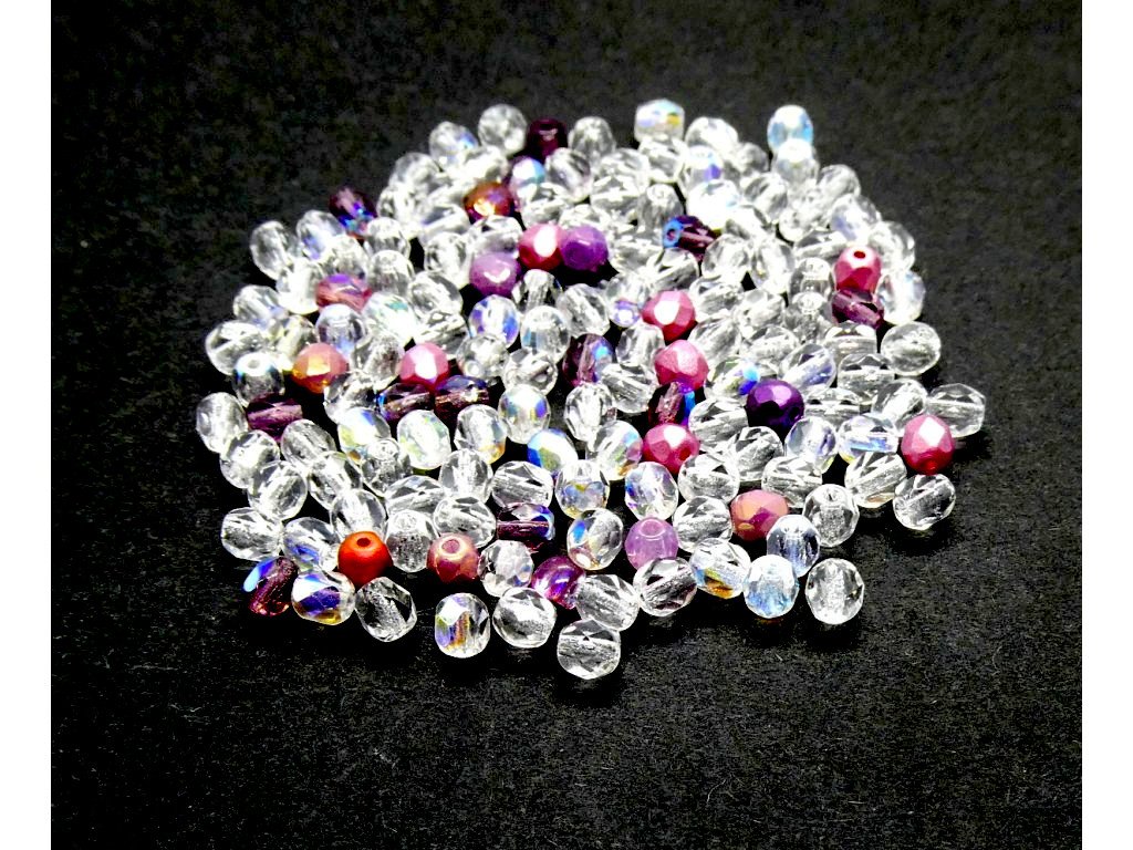 Broušené korálky, gulička 4 mm, farba mix