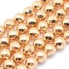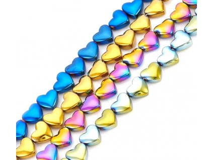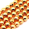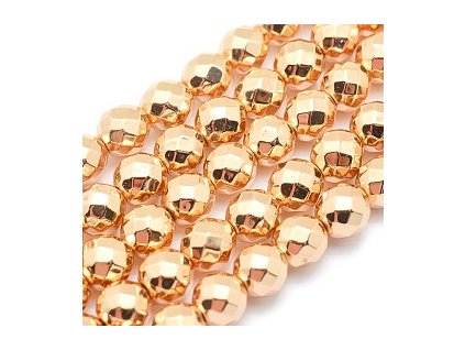 Korálky ze syntetického hematitu o průměru 4 mm, galvanizováno, barva zlatá. Korálky jsou prodávány po jedné šňůrce (cca 100 ks).