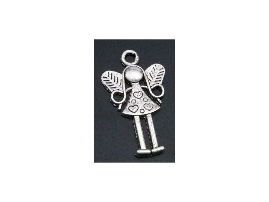 Kovový prívesok, anjelka 25x15 mm, farba starostriebro