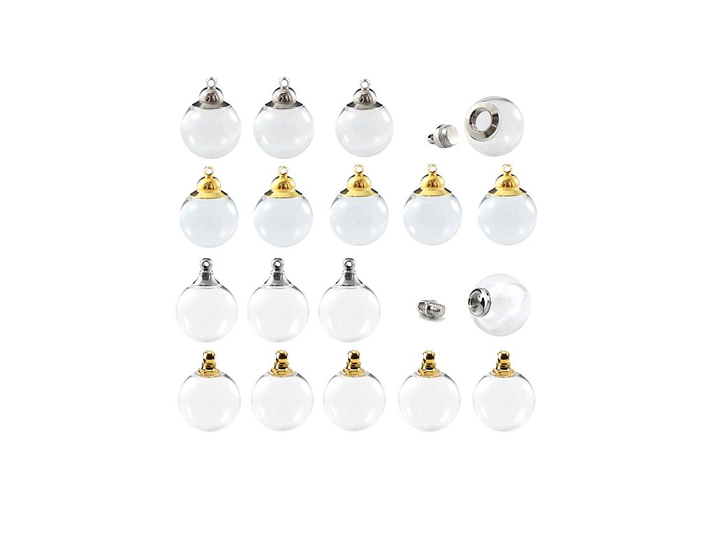 Skleněná lahvička kulatého tvaru, otevíratelná, o průměru 14 mm, mix barev (platina a zlatá)
