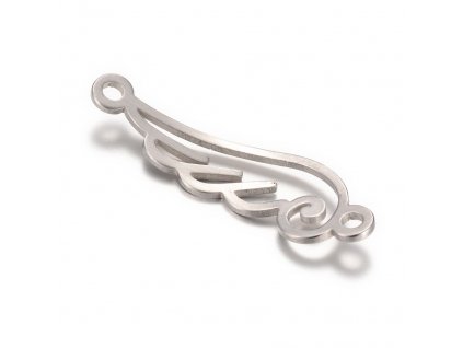Spojovací komponent, tvar pírko, velikost 29x6x1 mm, materiál ocel 201. Balení 10 ks.