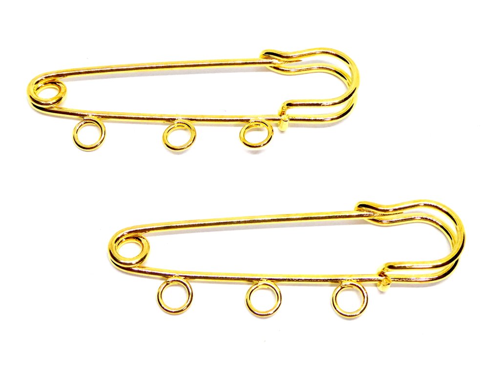 Spínací špendlík s 3 očky - 50x16 mm, barva zlatá