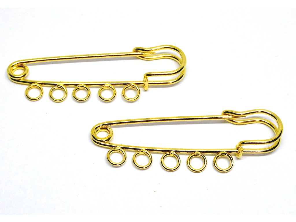 Spínací špendlík s 5 očky - 50x16 mm, barva zlatá